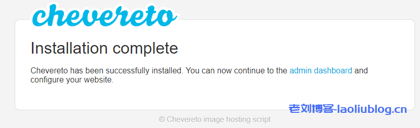 出现下图就表示已经安装成功了,然后点击「admin dashboard」进入管理页面。