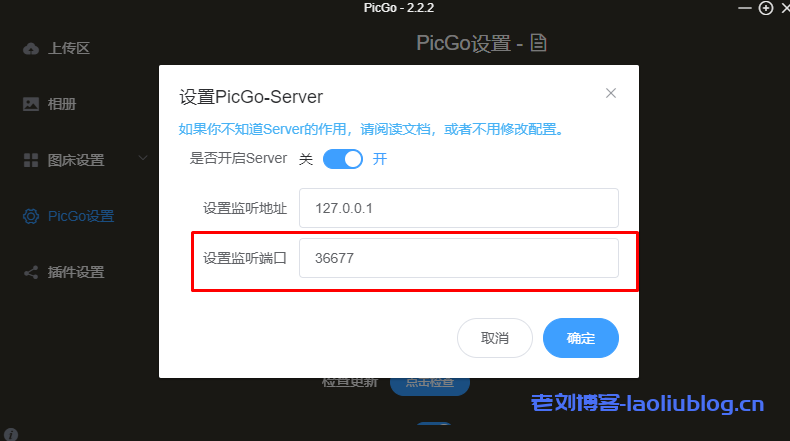 这里我们将监听端口设置为36677,防止 Typora 上传图片时失败。因为 Typora 中使用了此端口号。