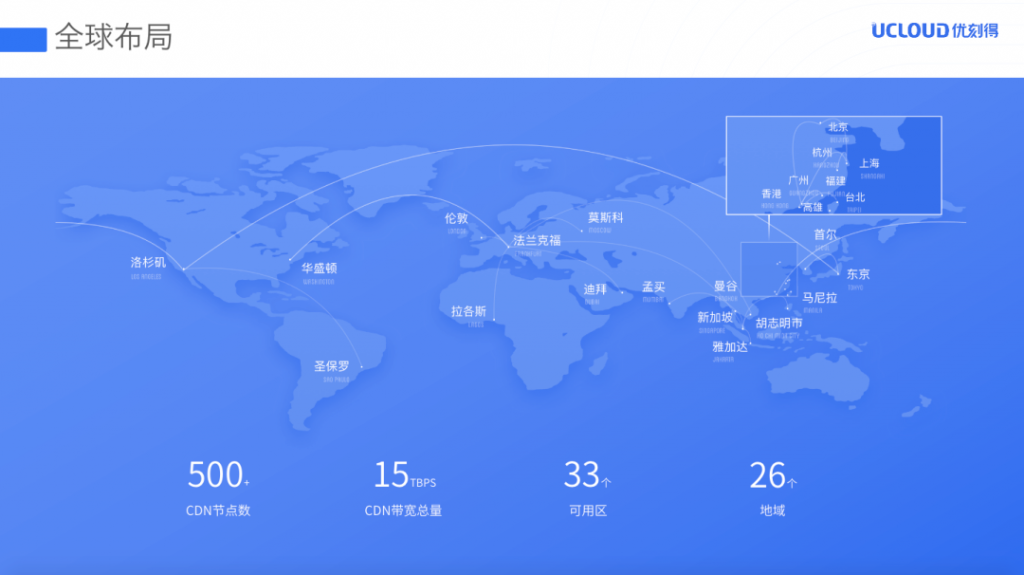 UCloud URTC实时音视频产品在抗网络抖动、抗丢包、弱网等多个方面均拥有技术领先性,基于UCloud在全球布局的33个数据中心、29条专线连接和URTC研发团队不断的优化和调优,国内通话平均网络时延小于70ms,跨国平均时延小于200ms。