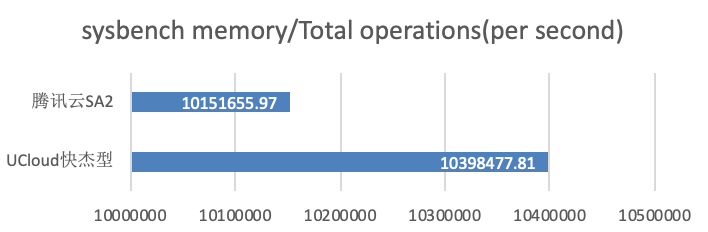 我们继续使用SysBench工具,此处压测方法为向内存中写入一段数据。每秒操作次数(operations per second)越大越好。