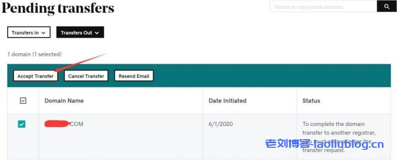 如果你想要加速域名迁移,可以返回到Godaddy,进入页面 https://dcc.godaddy.com/transfers/out ,勾选你正在迁出的域名(一般10-30分钟会显示),然后点击立即迁出,就会提示你:“Transfer Out Successful!Your request has been submitted. Changes may take 15 minutes to take effect.”大概15-120分钟以内,域名就迁移完毕!