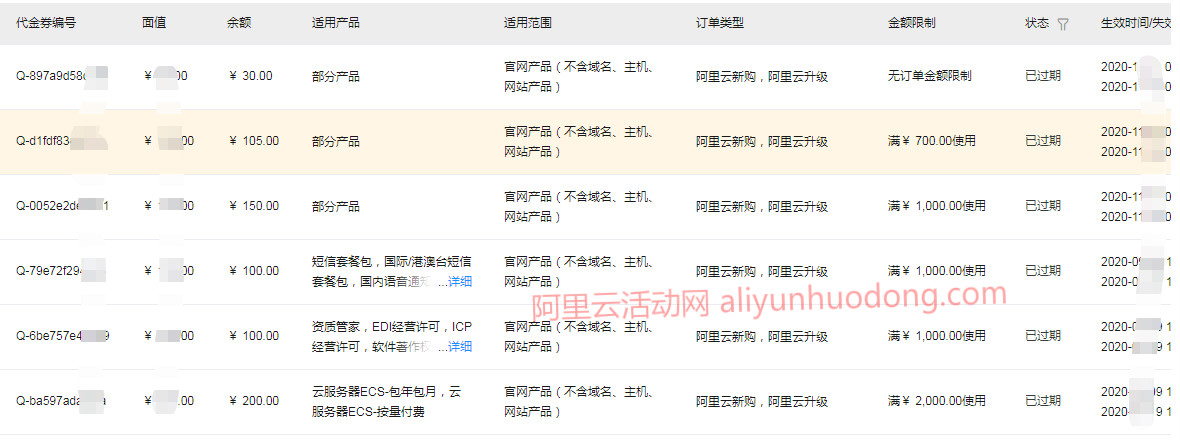 二、阿里云优惠卷金额及使用条件