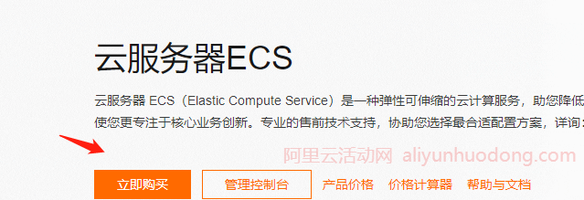 1、领取阿里云优惠券之后,用户可直接在云小站新用户特惠专区购买阿里云产品,也可以进入阿里云产品购买页面,我们以云服务器ECS产品为例:首先进入云服务器ECS购买页面,点击购买。