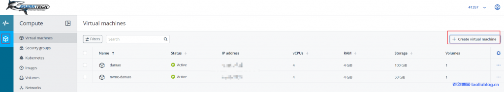 针对Sharktech鲨鱼机房启动公有云服务的消息,老刘博客已经在前文《Sharktech鲨鱼机房公有云服务public-cloud-hosting启动,机房可选洛杉矶、丹佛、芝加哥或阿姆斯特丹,试用送50美元信用金》和《Sharktech鲨鱼机房公有云主机促销,赠送$50,乞丐版$49/月,16核/32G内存/400G SSD/30T流量@10Gbps端口》两篇文章中介绍,那么如何在Sharktech鲨鱼机房开设VPS?本篇文章分享下Sharktech鲨鱼机房公有云服务public-cloud-hosting机器创建图文教程。