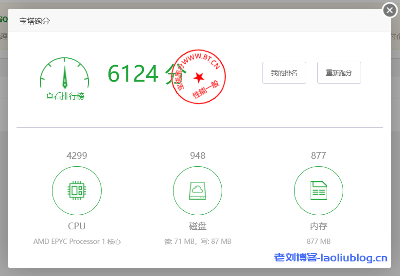 宝塔跑分6124,性能一般,机器配置信息与脚本测试结果一致