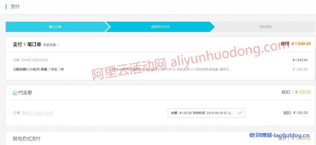 阿里云代金券是阿里云在其官方云小站上为新手用户免费赠送的一种抵扣性质的优惠券,新手用户一定要领取,在云服务器订单金额达到代金券满减使用条件时可直接抵扣现金使用,最新版的代金券为云产品通用代金券,除了云服务器ECS产品可以使用之外,云数据库、安全、OSS等众多热门云产品都是可以使用的。代金券领取地址为:阿里云小站,代金券使用效果如下图所示。