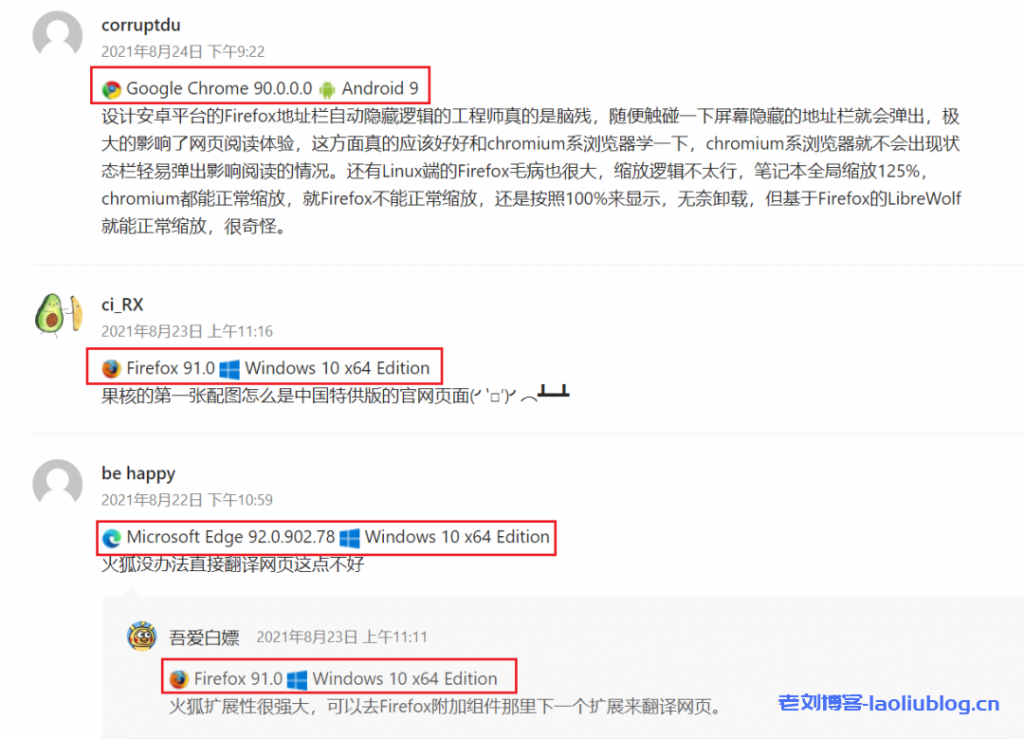比较常用的地方就是评论显示用户信息,例如果核网站的评论,就会显示用户使用的浏览器版本和系统版本。