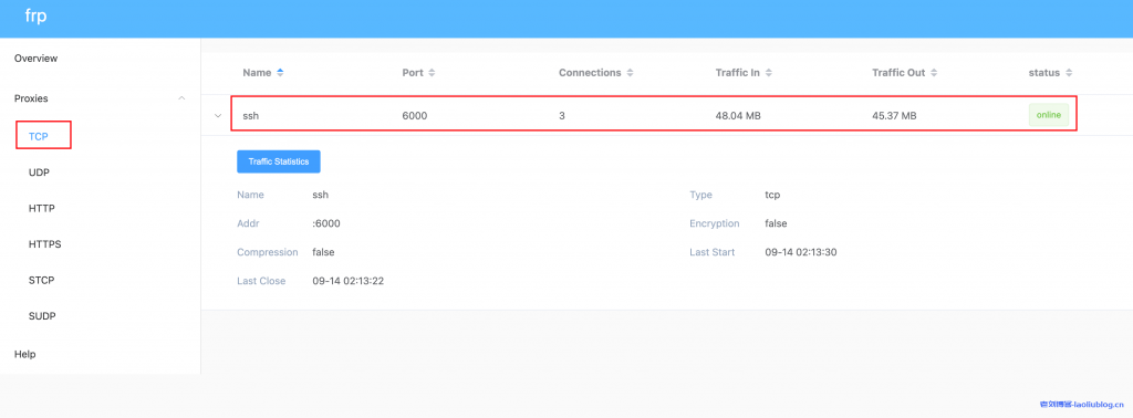管理界面实时查看 Frp 的运行状态及代理统计信息展示