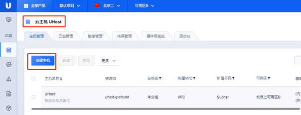 在UCloud控制台上创建云主机