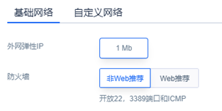 默认为你绑定【1Mbps】的外网弹性IP,若你需要更高带宽,可切换至自定义网络。