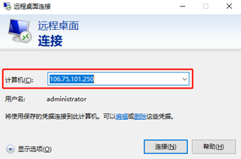 - 打开本地电脑中的【远程桌面连接】应用,红框处输入创建主机后分配的外网IP地址,点击【连接】。