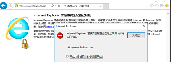 应用场景:首次登录Windows云主机,打开IE浏览器提示网站内容被阻止,需要关闭IE增强的安全配置。