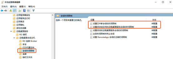 - 找到【计算机配置】→【管理模板】→【Windows组件】→【远程桌面服务】→【远程桌面会话主机】→【会话时间限制】