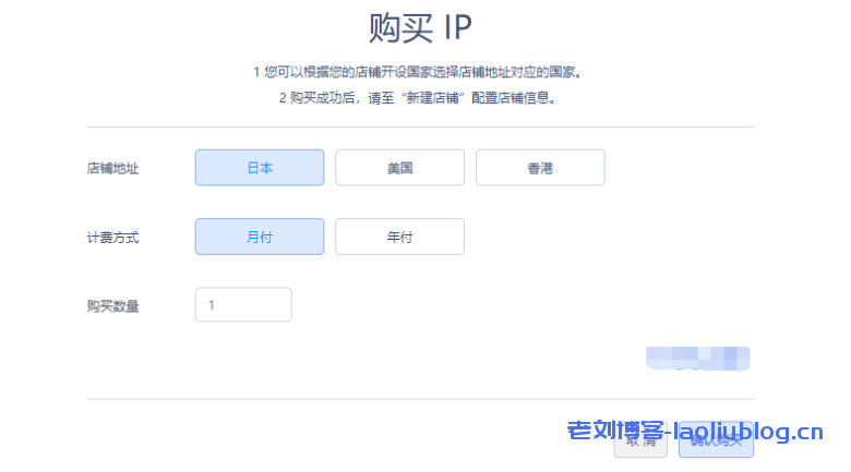 购买时⻓ (tip:年付更便宜); 购买数量(tip:IP 购买单词数量上限为 5)