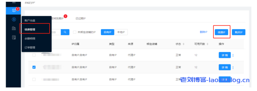 1. 选择需要续费的 IP 或点击“续费管理”;