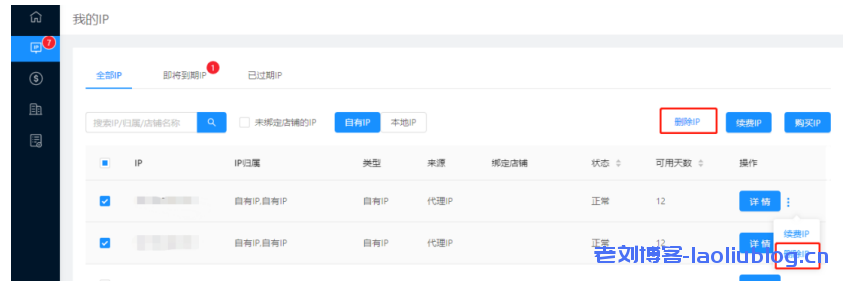 1. 选择需要删除的 IP 或点击“删除 IP”,删除后 IP 立即回收且不可找回,请谨慎操作;