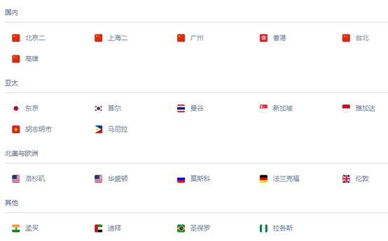 国内地域有北京,上海,广州,香港,台北和高雄(台湾);国外地域有东京,首尔,曼谷,新加坡,雅加达,胡志明市,马尼拉,洛杉矶,华盛顿,莫斯科,法兰克福,伦敦,孟买,迪拜,圣保罗,拉各斯。前往UCloud云服务器UHost页面>>