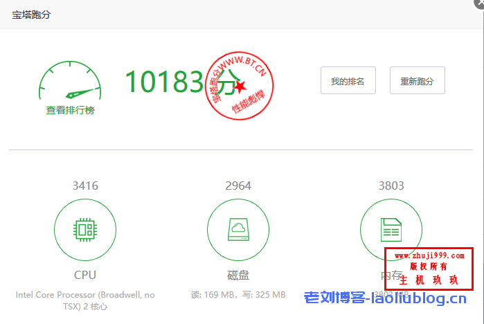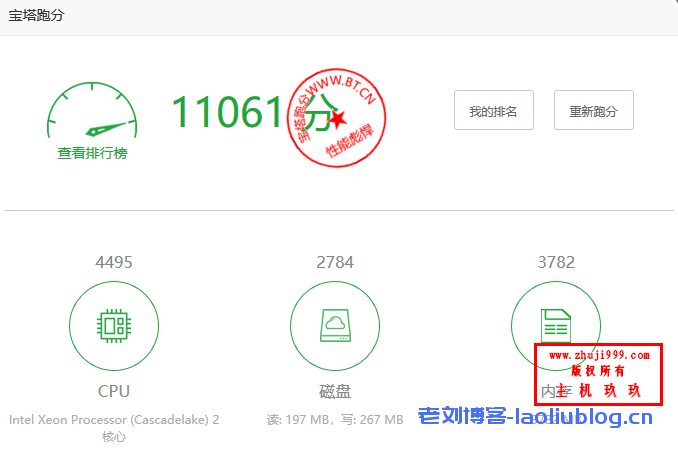 7、UCloud香港快杰云主机和UCloud香港通用云主机宝塔跑分测试。和上面的测试结果差不多,没有大的区别,得分稍微高一点点,但是也不是特别明显。