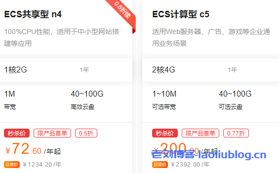 阿里云服务器首购特惠活动,新用户首购1元起,精选云服务器ECS 1核2G n4 72.6元/年,助您轻松上云。计算型c5实例2核4G1-10M带宽40-100G可选云盘,首购特惠200.00/年起。适用Web服务器、广告、游戏等企业通用业务场景