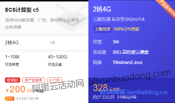 虽然阿里云腾讯云服务器的价格并不是最便宜的,但是他们各自也都有超高性价比的云服务器,阿里云新用户特惠活动中,2核4G云服务器才200元/1年(计算型c5实例,默认1M带宽,可选1M-10M,国内南北地域都可选),腾讯云1折秒杀优惠活动中,2核4G3M云服务器也才328元/1年(标准型SN3ne/S4实例,上海/北京地域可选),阿里云系统盘是40G的硬盘,腾讯云系统盘是50G的硬盘。这两款云服务器都是阿里云和腾讯云在活动中主推的云服务器,不仅实例规格(机型)的底层架构好,云服务器的数据处理能力,网络收发能力都很好,适用于绝大部分个人和一般性企业级用户的应用需求。