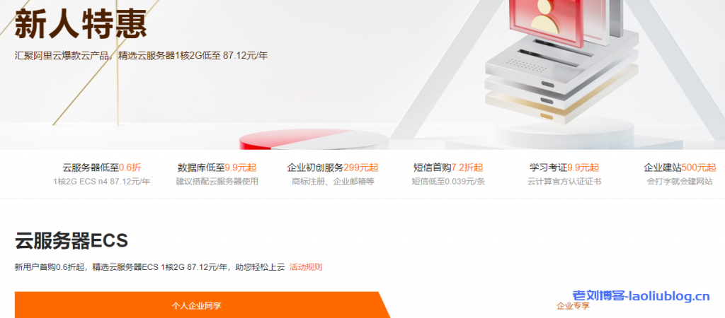 除此以外,阿里云还推出了精选特惠活动,分为个人和公司版活动,这里分享了官网近期推出的全系列云服务器特惠活动:云服务器精选特惠