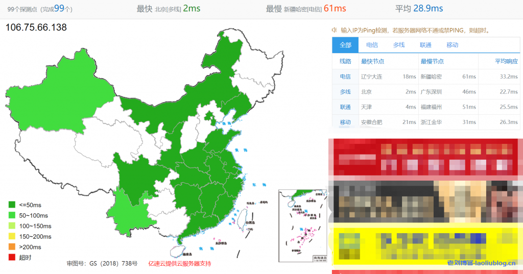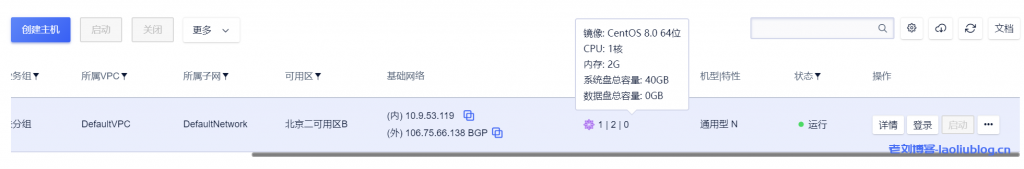 本次测评老刘博客选择的是UCloud北京二可用区B的通用型N云主机,外网IP是106.75.66.138。