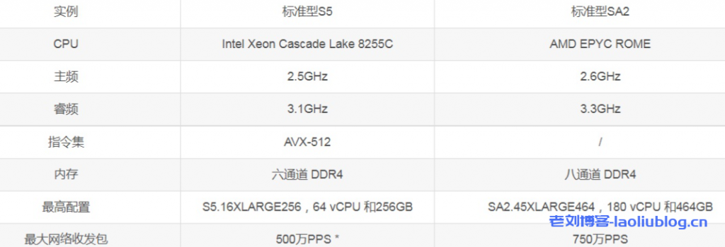 S5和SA2都是面向对业务性能有极高要求的企业用户,需要特好的云服务器性能。两者都是独享机型,CPU资源 100%可独享。SA2和S5区别在于中间的字母“A”,腾讯云标准型SA2服务器使用的是AMD处理器,而标准型S5实例使用的是Intel处理器。官方规格数据显示如下:
