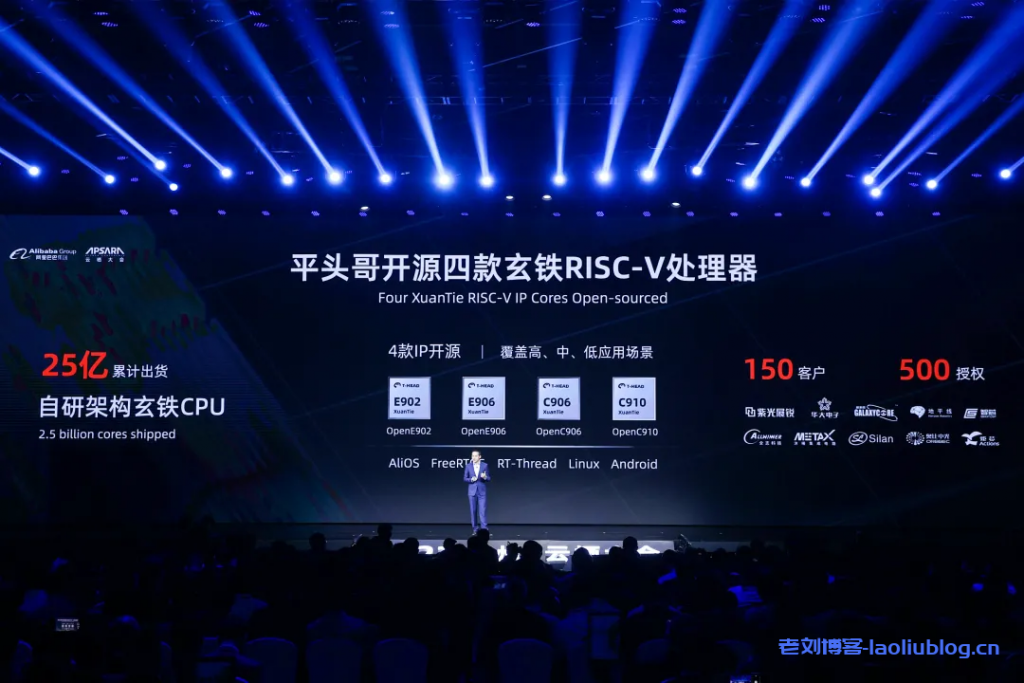 在此之前,平头哥旗下玄铁系列处理器出货量已达25亿颗;两年前问世的阿里第一颗芯片含光800已实现规模化应用,通过阿里云服务了搜索推荐、视频直播等行业客户。
