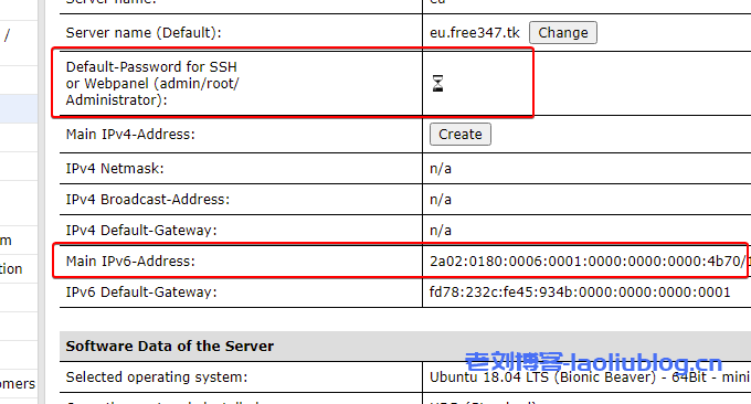 这是EUserv免费VPS查看信息页面,重装系统成功后,你就可以看到root的密码了,还有IPv6地址。