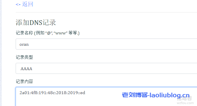 对于IPv6地址,DNS解析选择AAAA记录类型记录,记录值为IPv6地址即可。