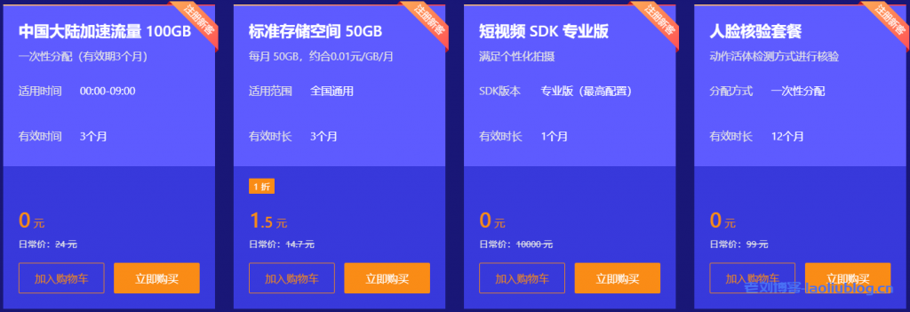 新客注册 0 元起,标准存储 0.01元/GB/月,包括中国大陆加速流量100GB免费试用3个月,标准存储空间 50GB,短视频SDK专业版,人脸核验套餐。立即前往>>