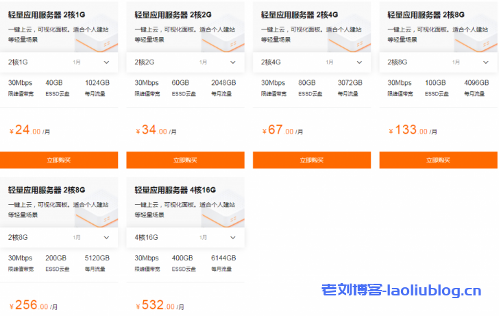 一、阿里云轻量应用服务器优惠(国内地域)