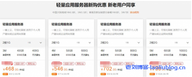 相关活动:阿里云轻量应用服务器新老用户同享优惠:年付65折,3年55折