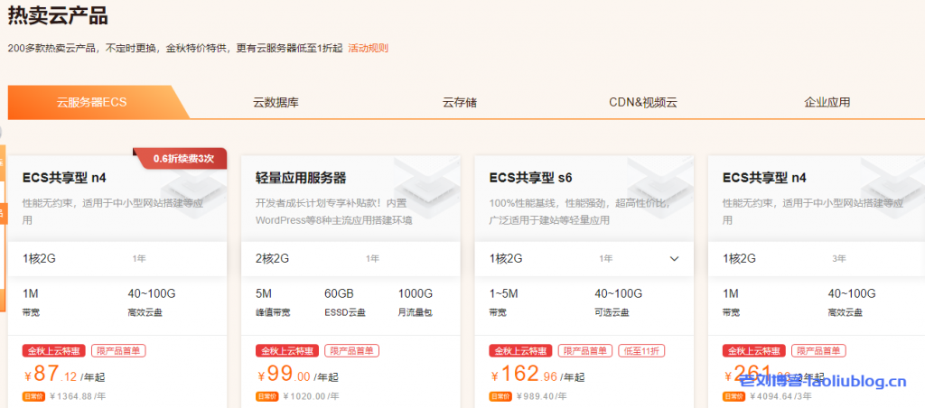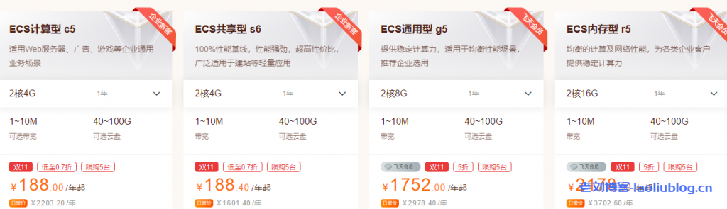 云服务器低至0.4折起,2核2G 5M带宽的服务器直接低至60元/年,同时还有其他云产品,比如,RDS MySQL云数据库直接降至9.9元/年,还有商标智能注册、SSL证书、对象存储OSS包、短信包以及CDN等诸多云产品。点此进入阿里云双11云服务器ECS会场购买