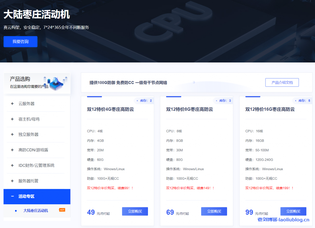 小鹿云双12活动I–枣庄云服务器,提供100G防御 免费防CC 一级骨干节点网络,产品介绍文档