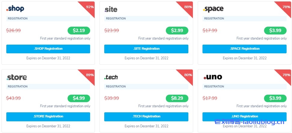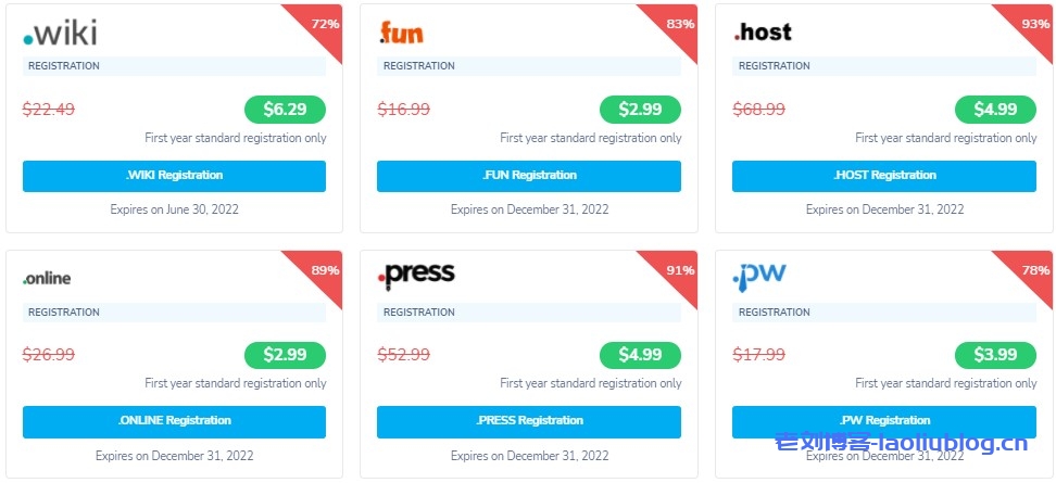 NameSilo:2022年便宜域名推荐,最高可获得96%折扣优惠。2022新年伊始,域名注册商NameSilo推出了特价域名促销活动,不同后缀的普通域名给出的折扣价会有所区别,首年注册最高可获得96%优惠,下单购买这些便宜域名还可获得免费的WHOIS隐私、域名停放、域名维护等服务,整体来说性价比非常高。下面来看下参与促销的便宜域名有哪些。