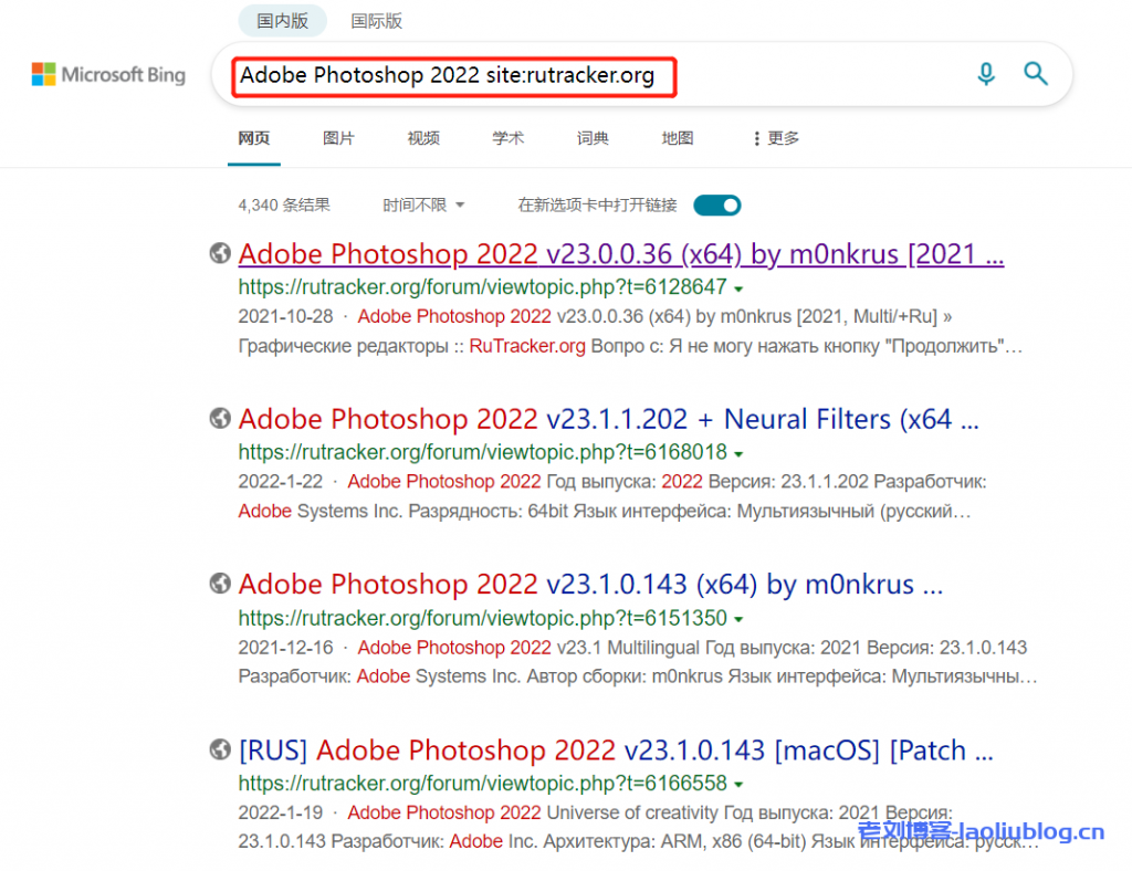 比如我要检索 Adobe Photoshop 2022 资源,则搜索关键词为: