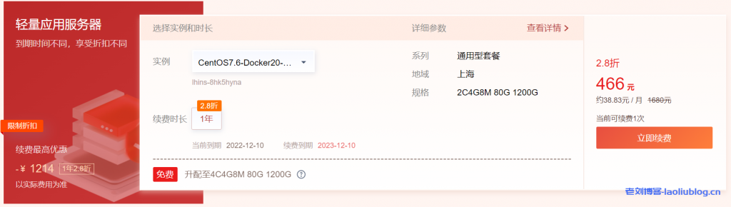 如下图所示,指定配置的腾讯云轻量应用服务器(1核2G5M或2核4G8M)可以享受折扣续费价(3.7折),还可以免费升级,例如图中的2C4G8M就可以免费升级成4C4G8M,即CPU翻倍:传送门