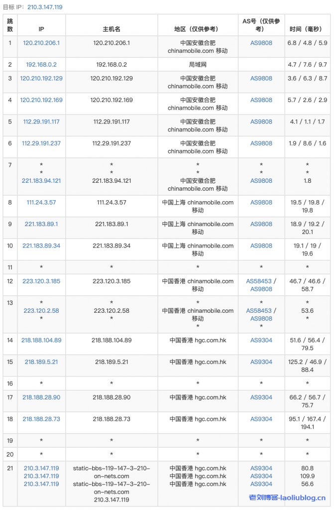 1 210.3.147.1 3.64 ms AS9304 China, Hong Kong, hgc.com.hk
