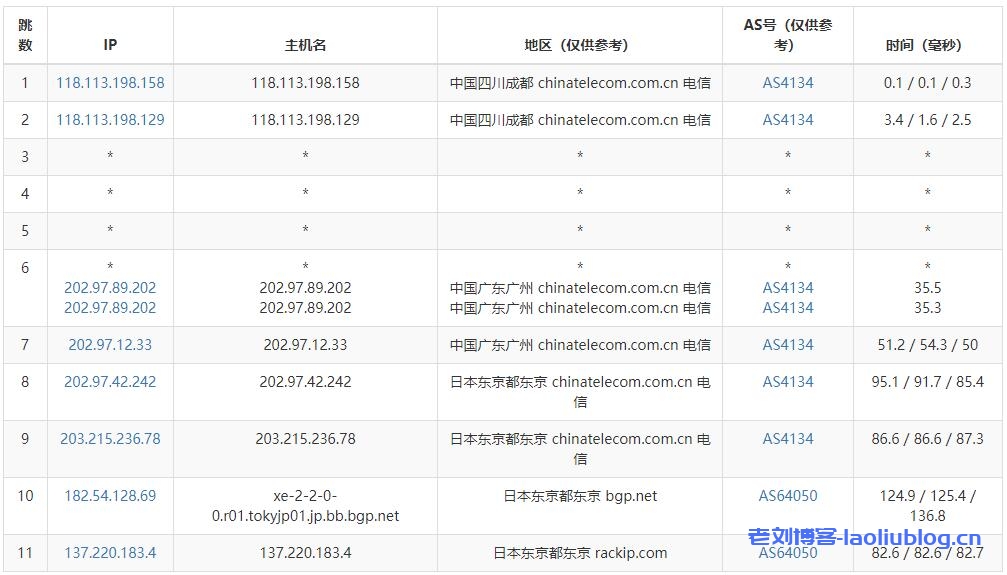 可以看到电信网络从广州网口出去后就是直连日本机房的。