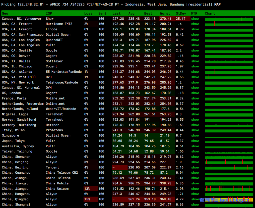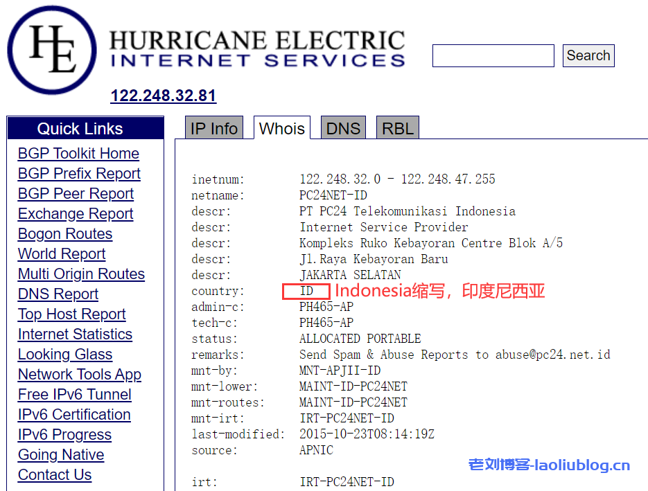 看下Daceni官方给的测试IP:122.248.32.81是不是原生IP,结果确是印尼原生IP,如图: