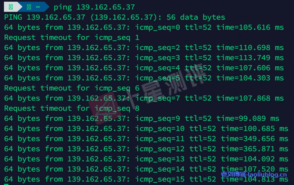 我们可以利用 Windows 或者 Mac 上面的终端工具来测试延迟,当然 Linux 上面的终端也可以进行测试。我们打开终端输入下面的命令即可,IP 请根据实际情况更换。