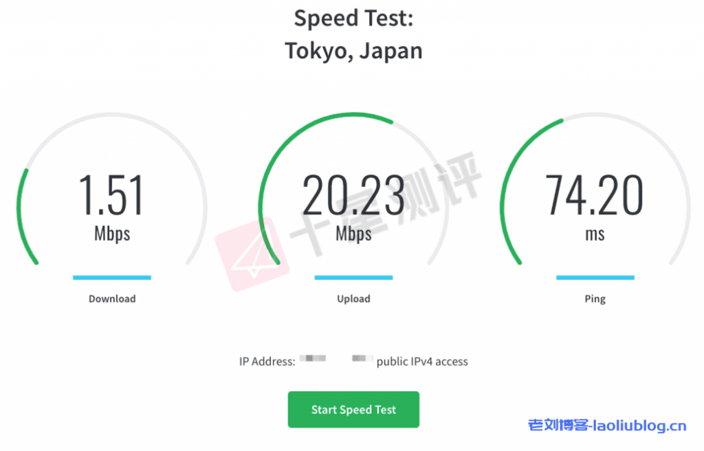 使用方法其实非常简单,找到对应数据中心的官方在线测速链接,进入以后就可以看到下图的界面,点击 “Start Speed Test” 就可以进行下载速度、上传速度、Ping值测试了。