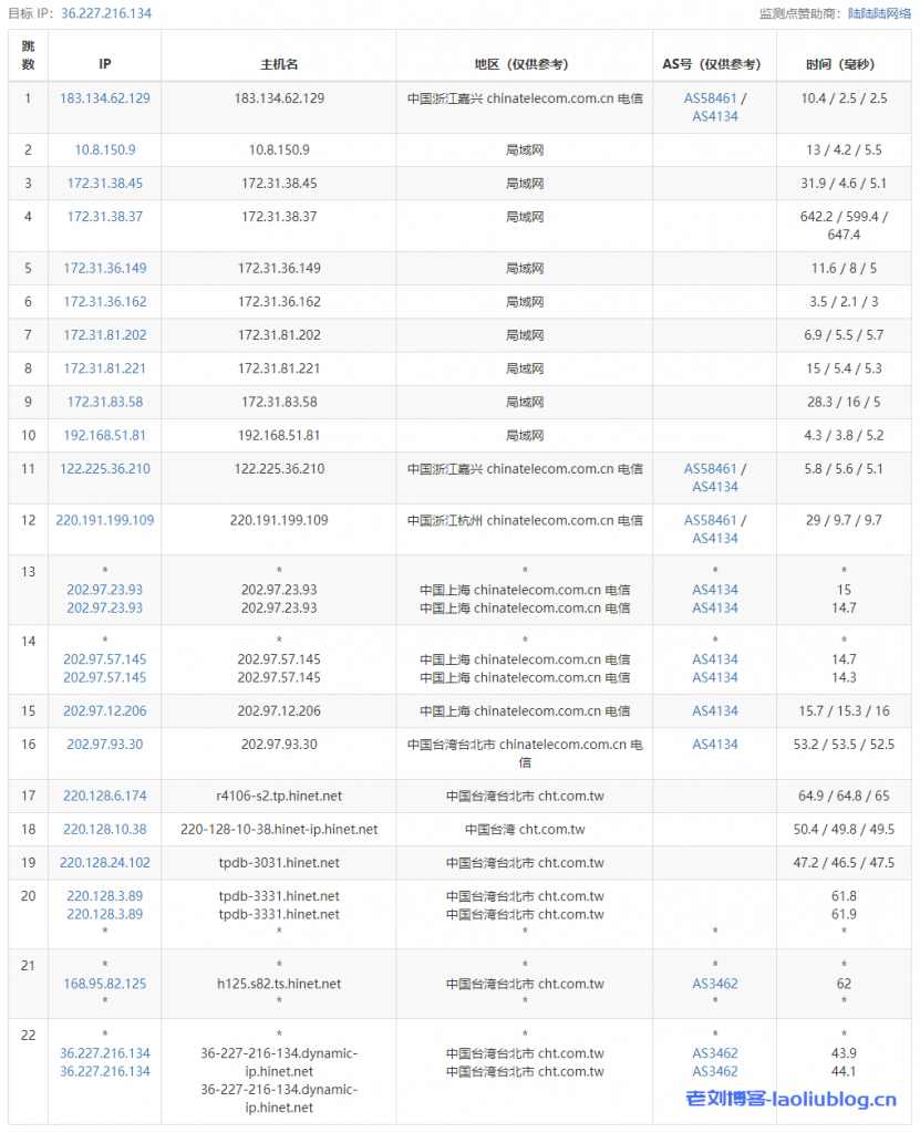 3 168.95.82.122 1.98 ms AS3462 China, Taiwan, Taipei City, cht.com.tw