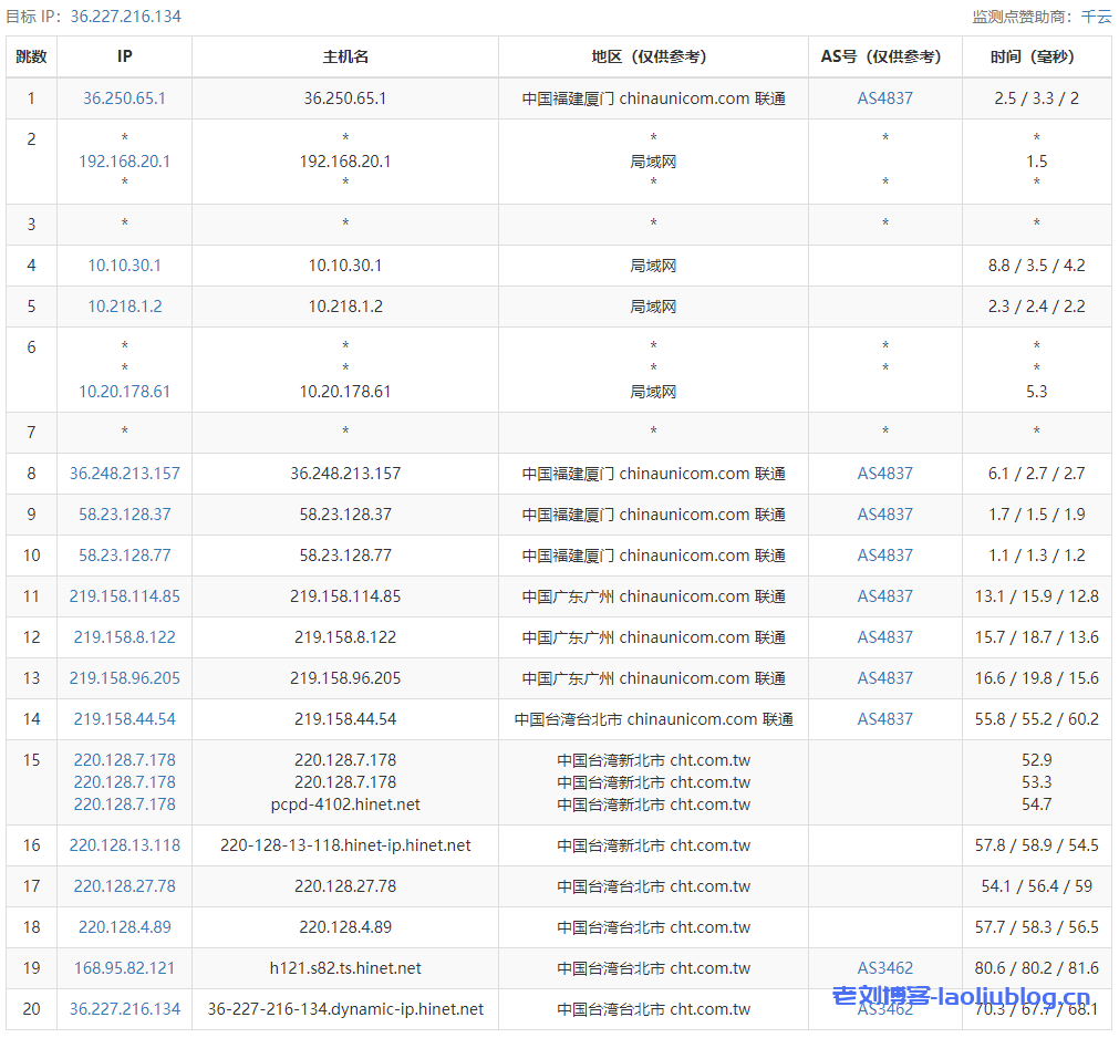 6 220.128.10.37 1.49 ms * China, Taiwan, cht.com.tw