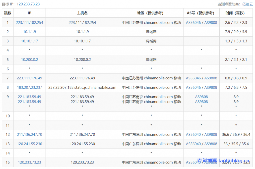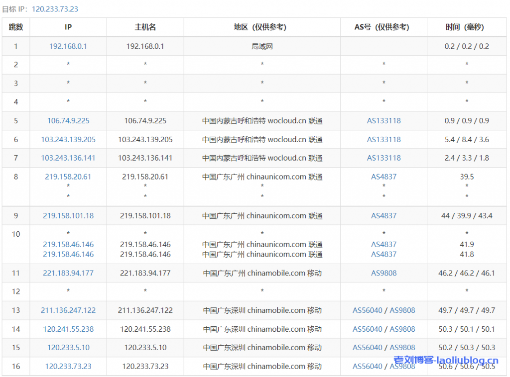 1 120.233.73.1 2.38 ms AS56040 China, Guangdong, Shenzhen, ChinaMobile