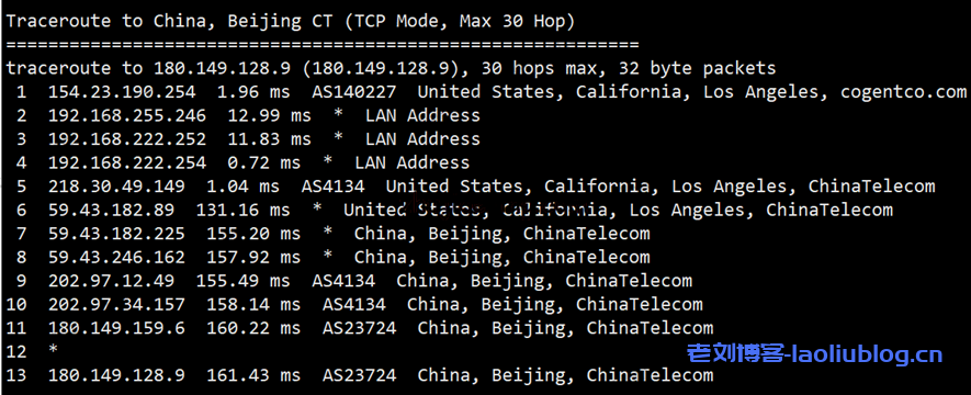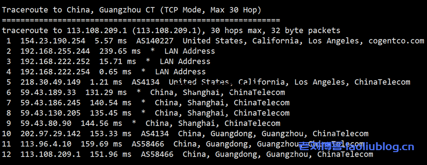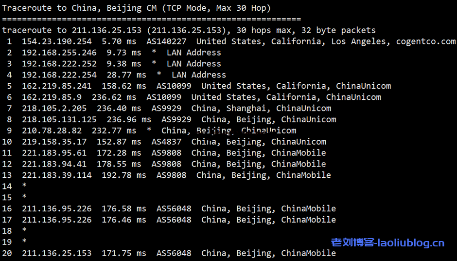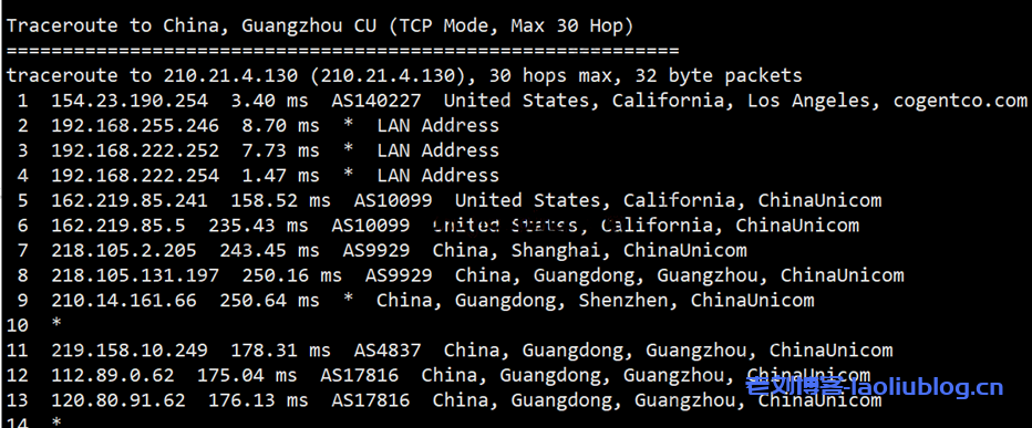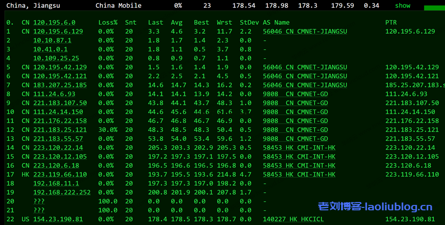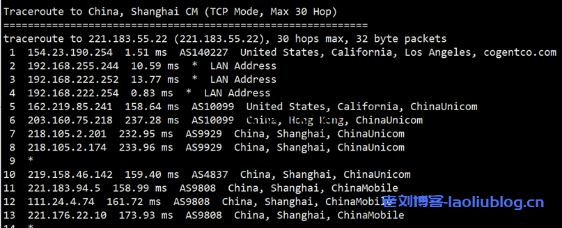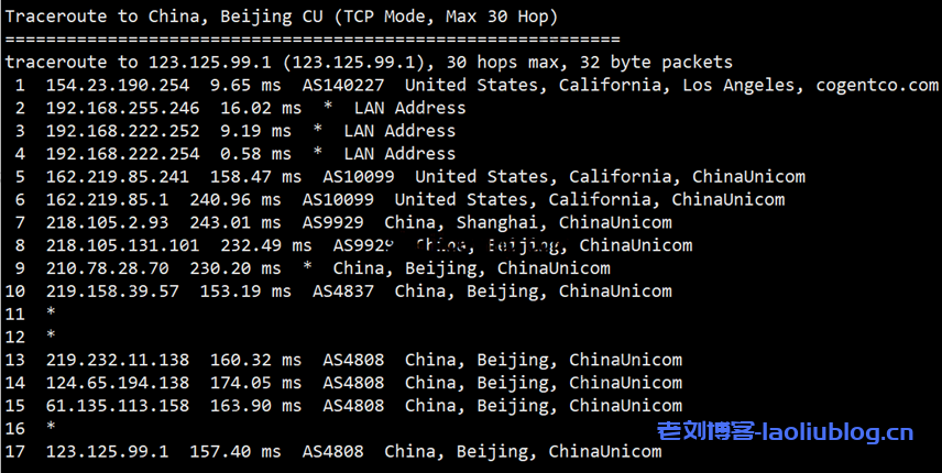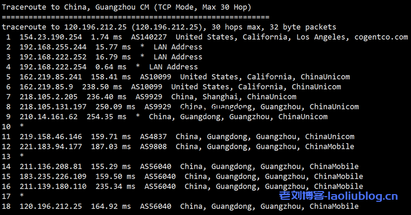 回程,到国内移动:走的联通高端AS9929网络链路回国