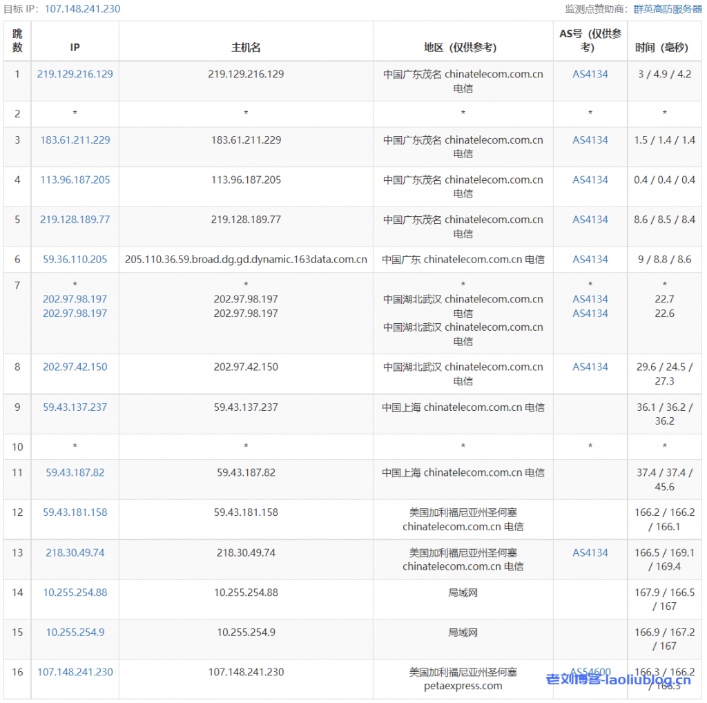 4 218.30.49.197 1.54 ms AS4134 United States, ChinaTelecom