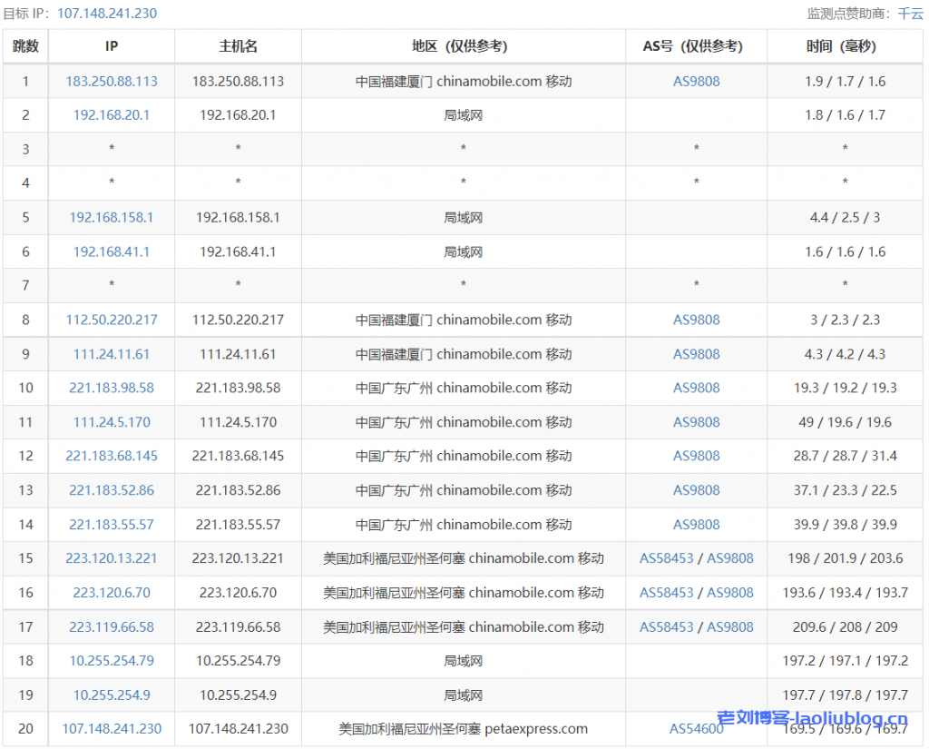 5 223.120.6.69 1.19 ms AS58453 United States, California, San Jose, ChinaMobile