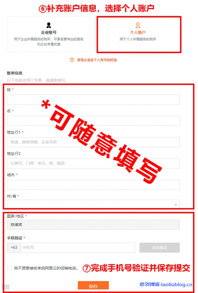 5,补充信息,选择个人账户,这里的内容可随意填写。